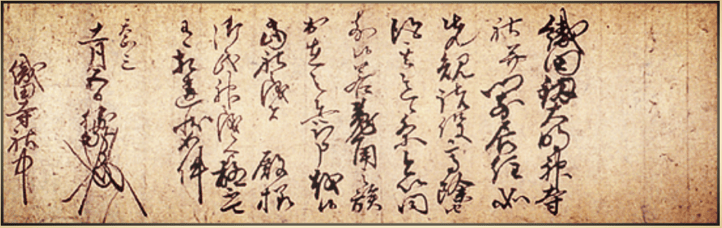 ※柴田勝家が、劔神社・織田寺の門前に対し、様々な税の負担を免除したもので、「当社の儀は殿様御氏神」と書かれており、信長公が劔大明神を氏神として崇敬したことを示している。